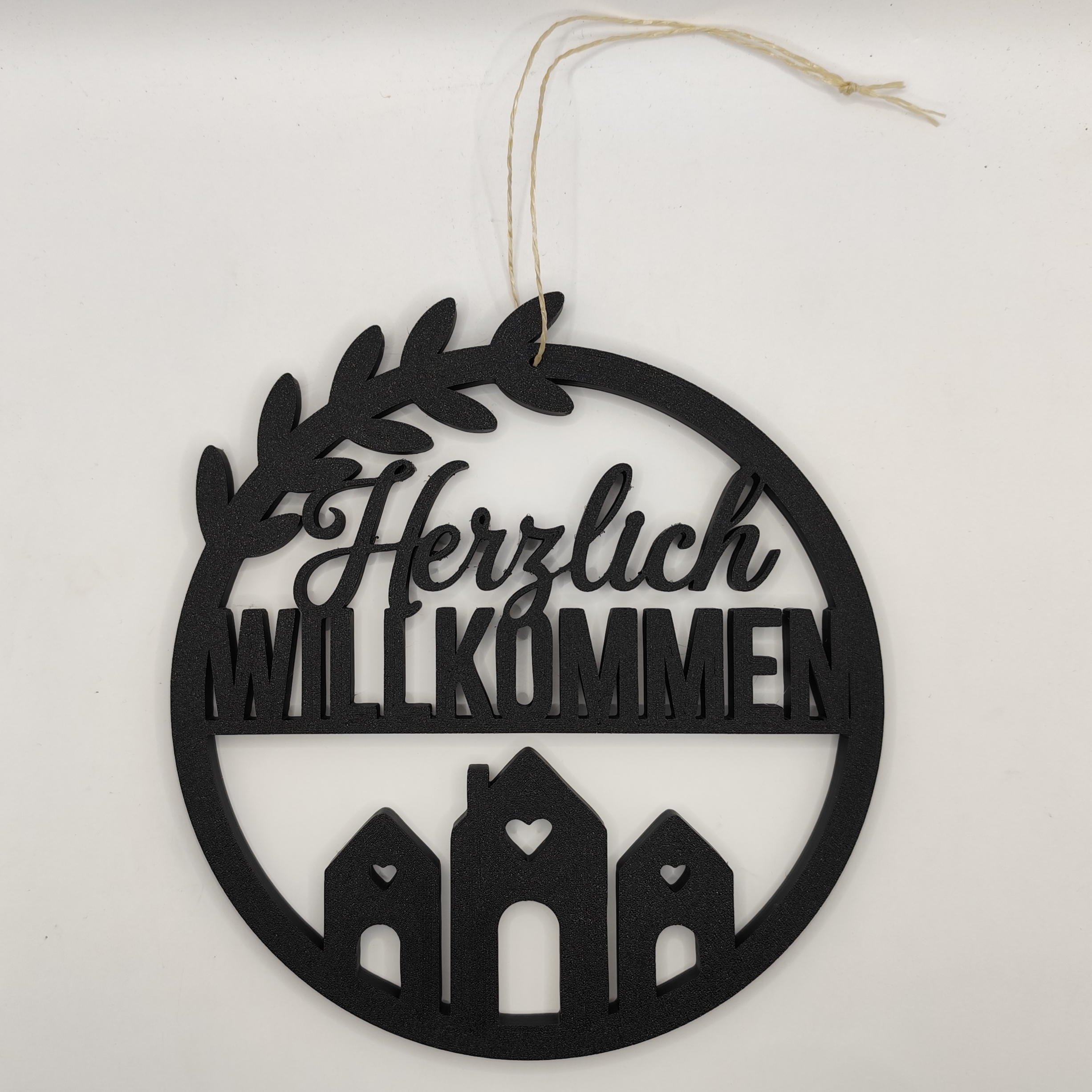 „Herzlich Willkommen“-Anhänger aus dem 3D-Drucker – dekorativ, zum Aufhängen, mit liebevollen Details. Material: PLA schwarzGröße: 20cm Abholung in Neu-Ulm Steinheim. Versand gegen Übernahme der Kosten möglich. Nach § 19 Abs. 1 UStG wird keine Umsatzsteuer berechnet.